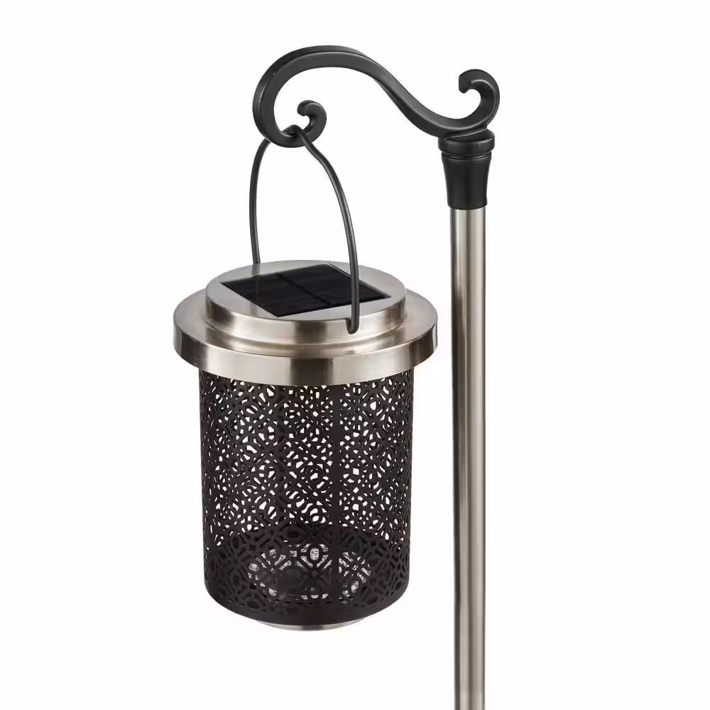 Hampton Bay MONROE Solar Black and Silver LED Lantern Path Light with Shepard's Hook 15 Lumens (2-Pack)