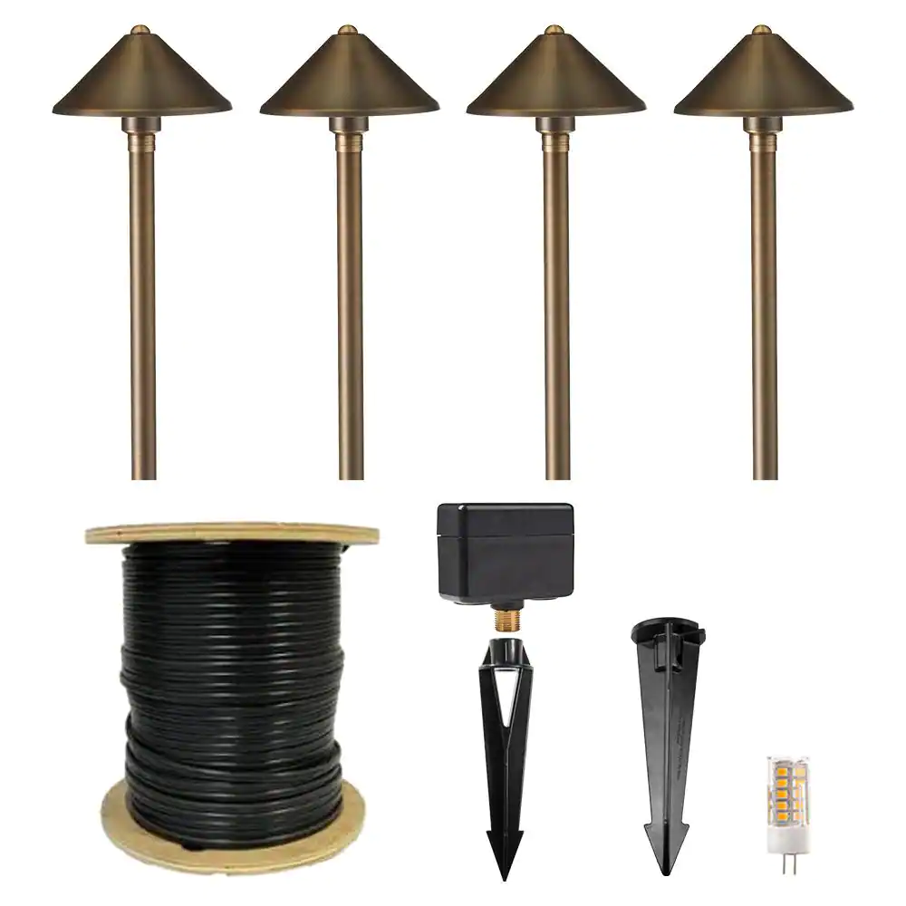 VOLT Low Voltage Cast Brass Conehead Bronze Path Light Expansion Kit (4-Pack)