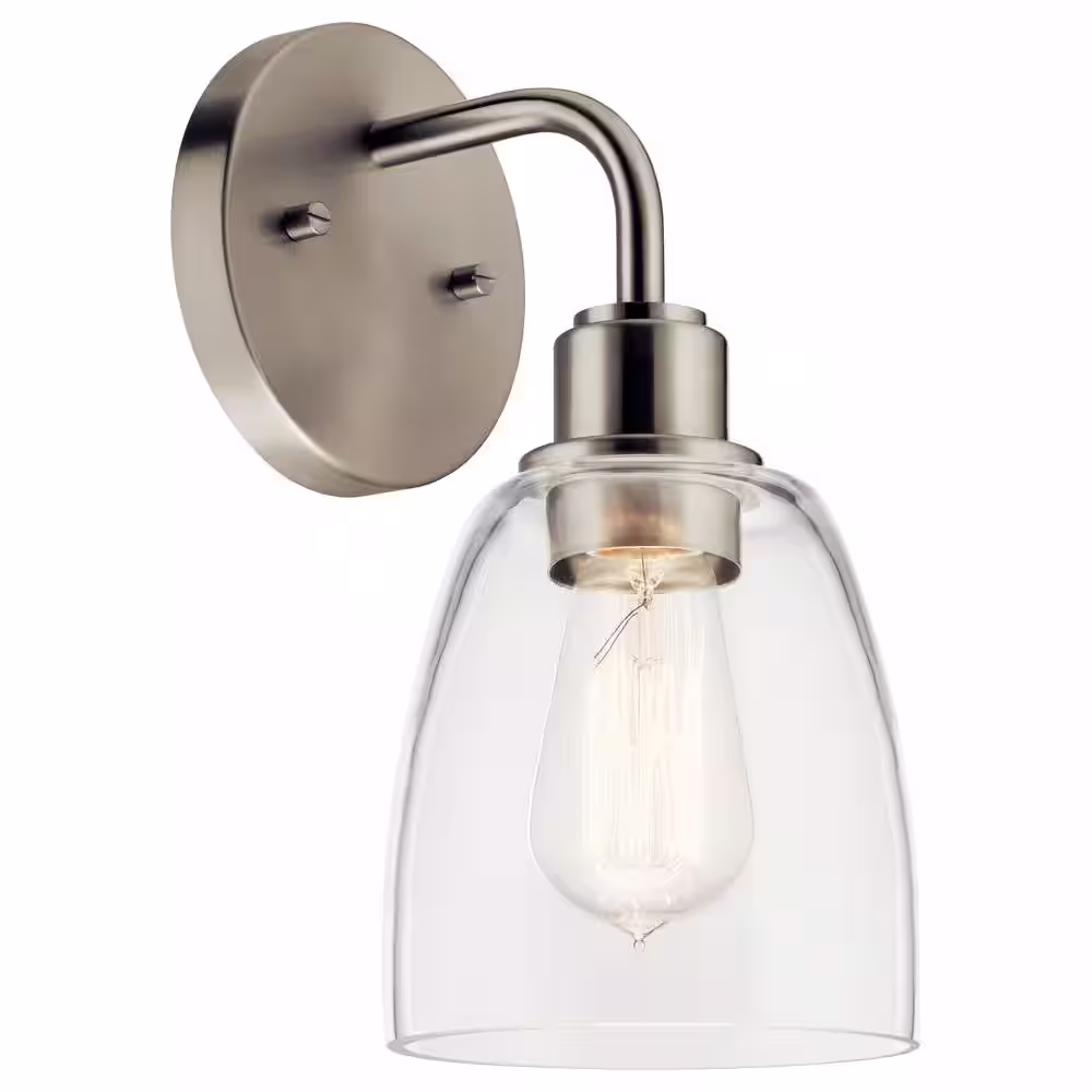 KICHLER Meller 11.25 in. 1-Light Brushed Nickel Bathroom Indoor Wall Sconce Light with Clear Glass