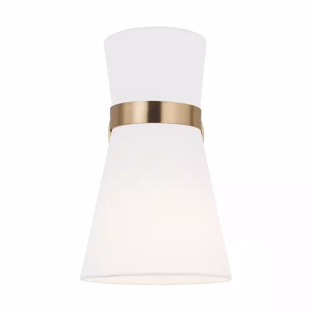 Generation Lighting Clark 7 in. 1-Light Satin Brass Wall Sconce With White Linen Shade and LED Light Bulb