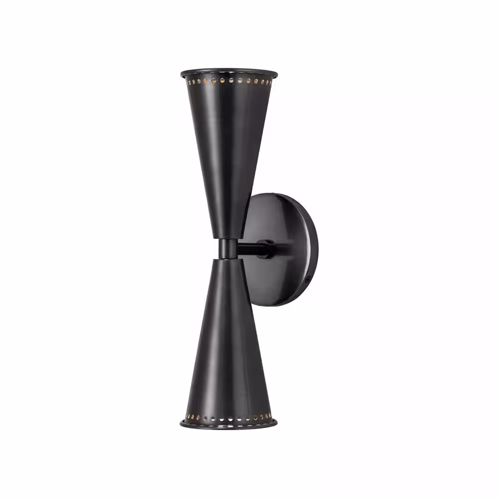 RRTYO Barrett 2-Light Black Up and Down Dual Cone Dimmable Vanity Light Horn Hourglass Pinhole Wall Sconce
