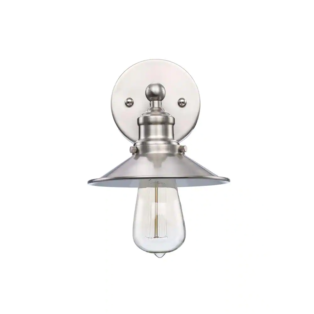 Hampton Bay Glenhurst 1-Light Brushed Nickel Industrial Farmhouse Indoor Wall Sconce Light Fixture with Metal Shade