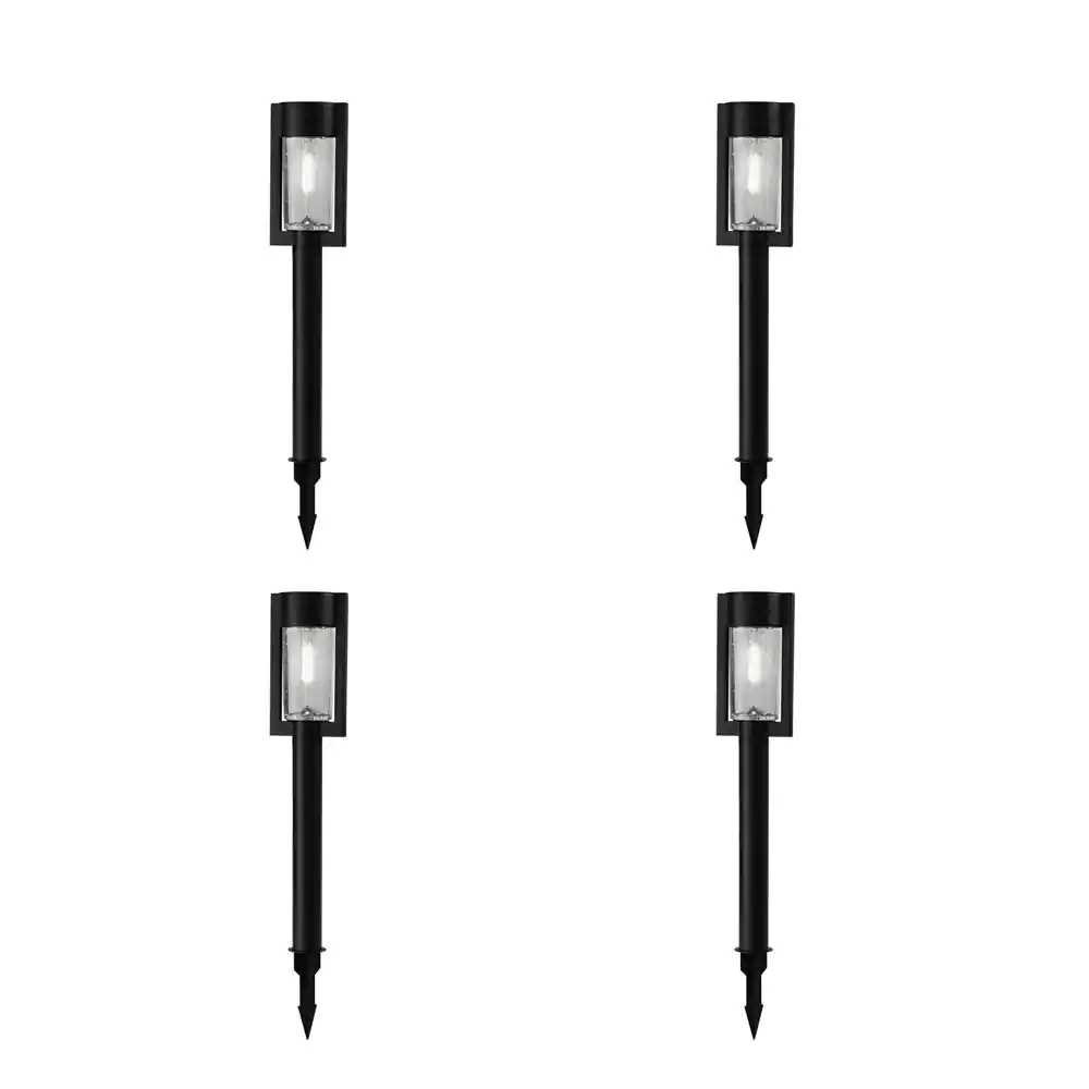 Hampton Bay Clermont 15 Lumens Black LED Modern Outdoor Solar Bollard Path Light Set with Vintage Bulb (4-Pack)