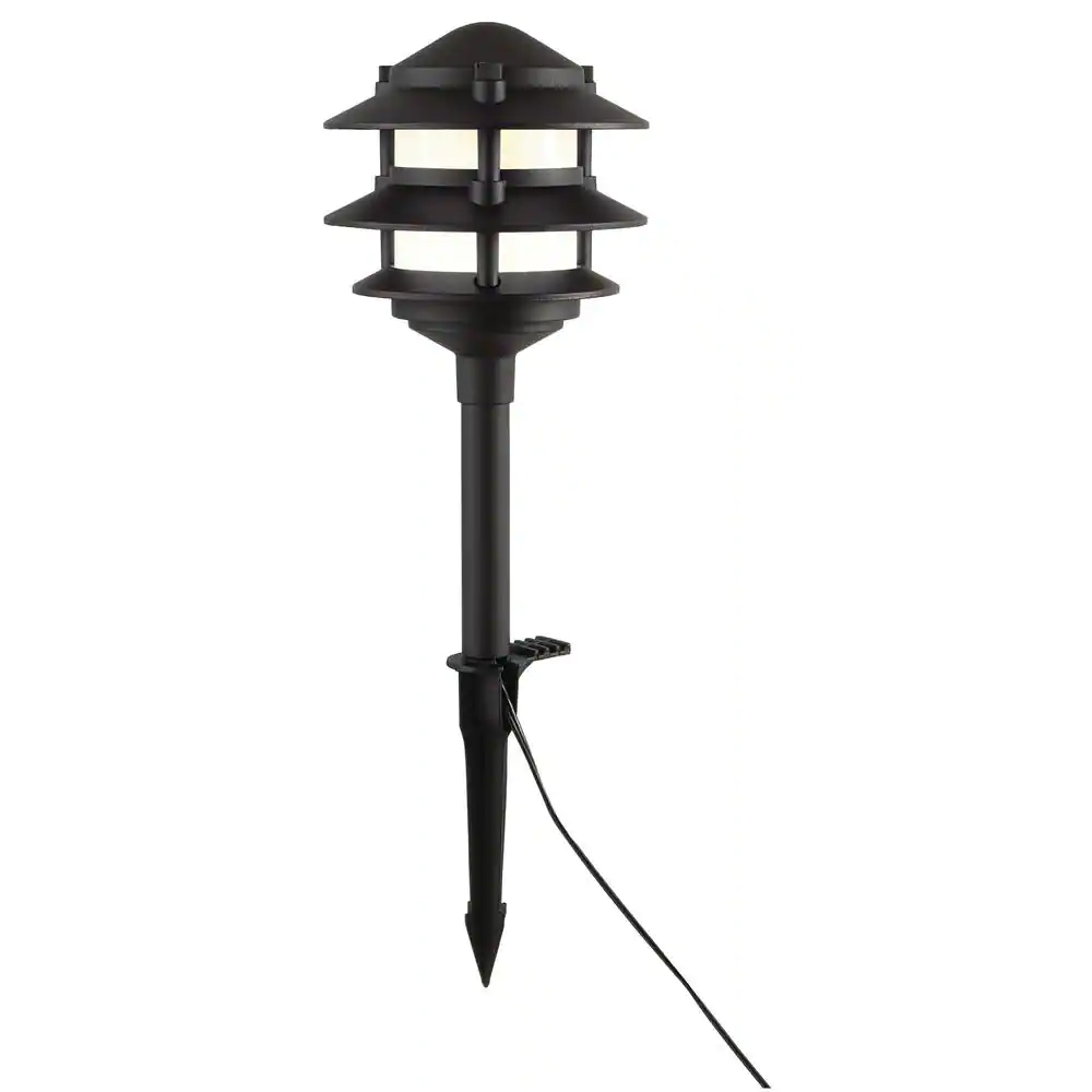 Hampton Bay Elmore Low Voltage Black Integrated LED 3-Tier Metal Outdoor Landscape Path Light with Frosted Plastic Lens