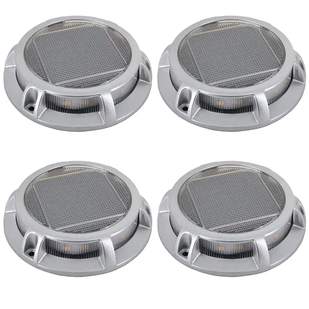 Hampton Bay Solar 15 Lumens Silver Integrated LED In-Ground Disk Path Light with Textured Lens (4-Pack); Weather/Rust Resistant