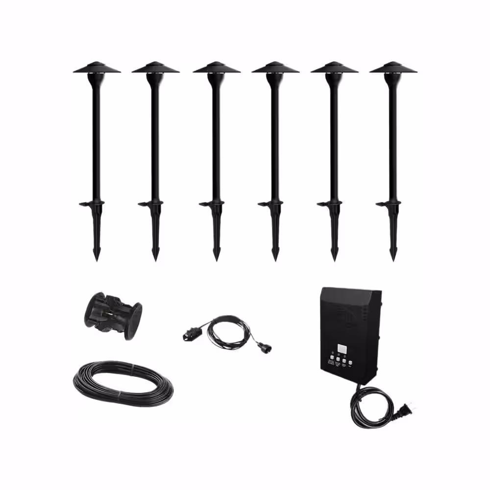 Hampton Bay 30-Watt Equivalent Low Voltage Integrated LED Black Outdoor Landscape Path Light Kit (6-Pack)
