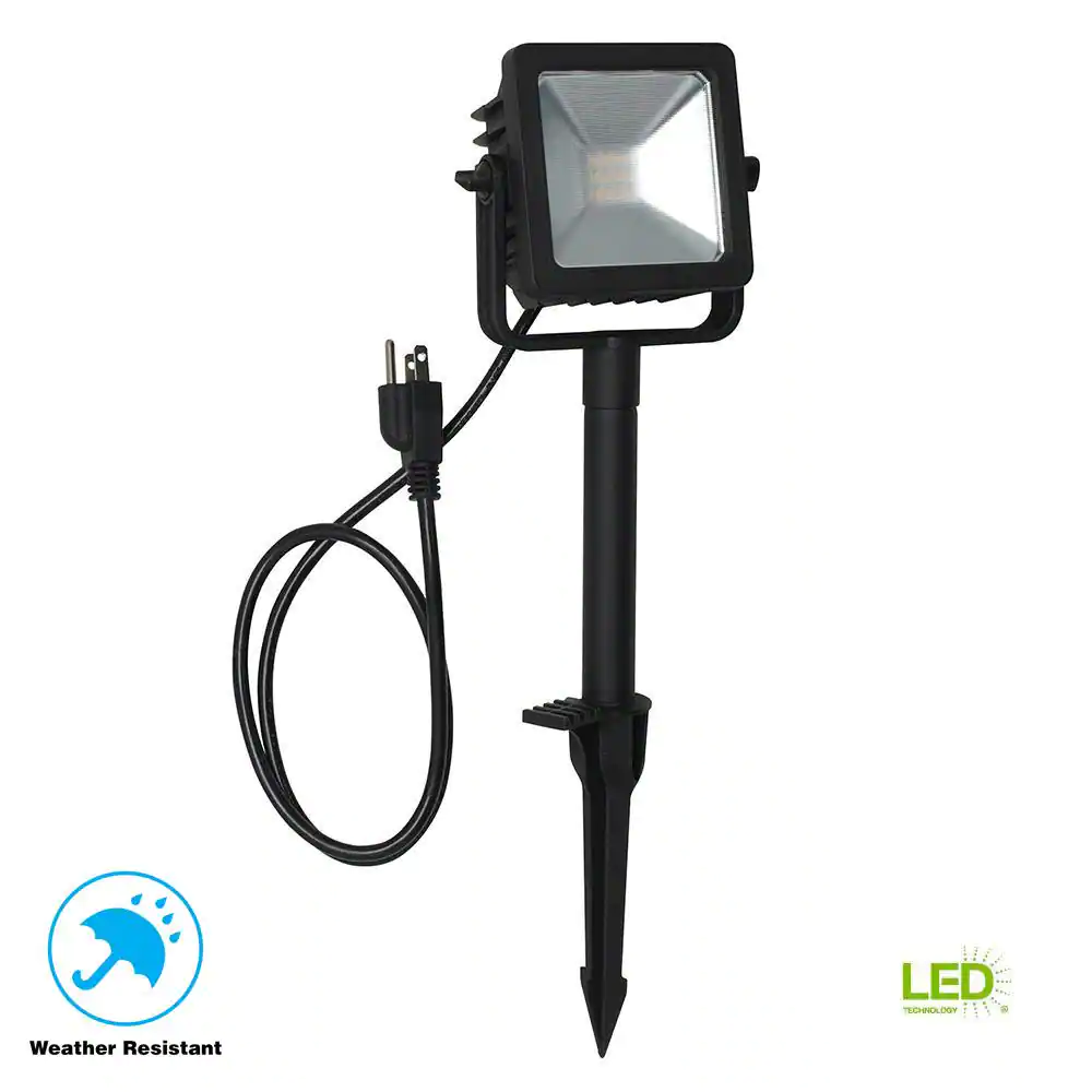 Hampton Bay Plug-In Black Integrated LED Outdoor Landscape Flood Light