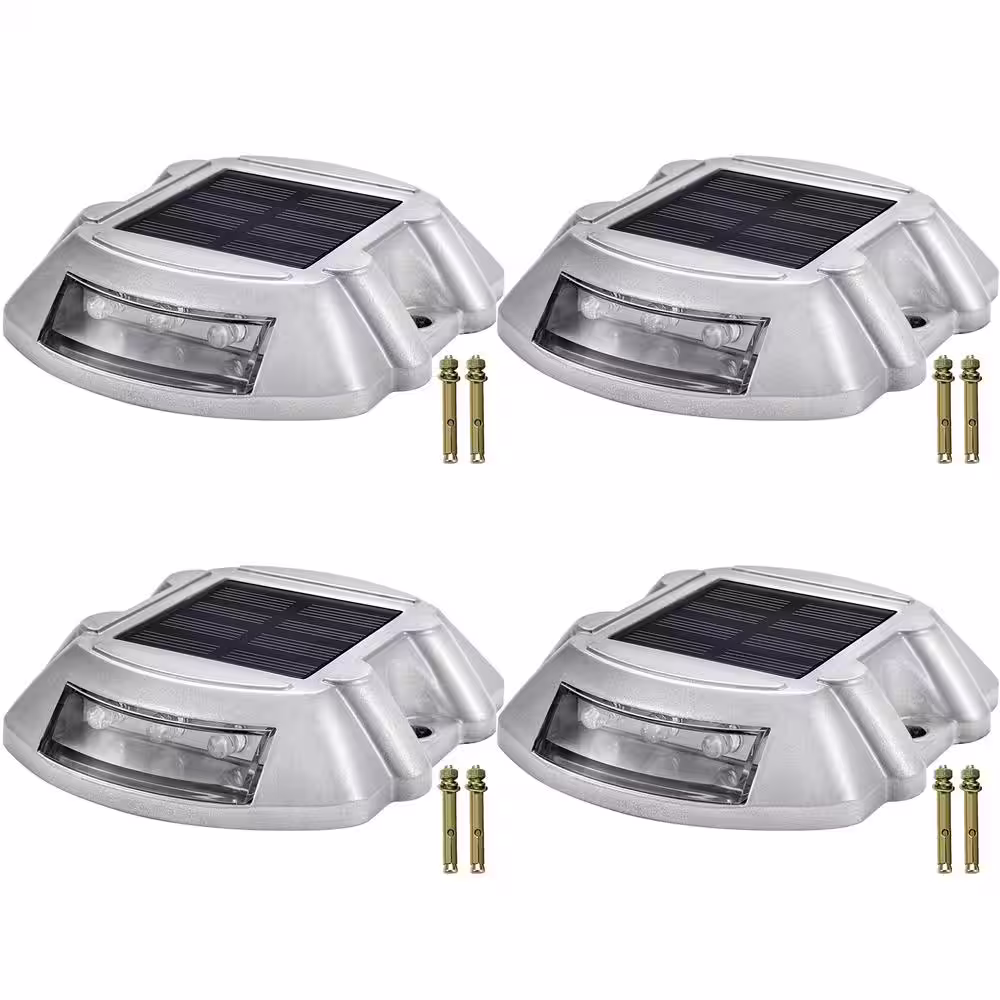 VEVOR Dock Lights Led Solar Powered 4-Pack Outdoor Waterproof Wireless 6 LEDs Dock Lights with Screw for Path Warning, White
