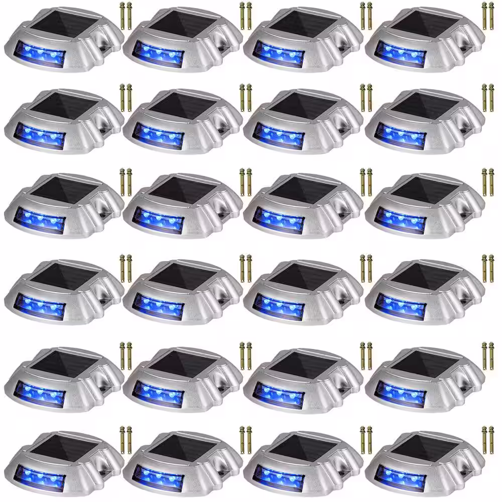 VEVOR Dock Lights Led Solar Powered 24-Pack Outdoor Waterproof Wireless 6 LEDs Dock Lighting with Screw for Path Warning, Blue