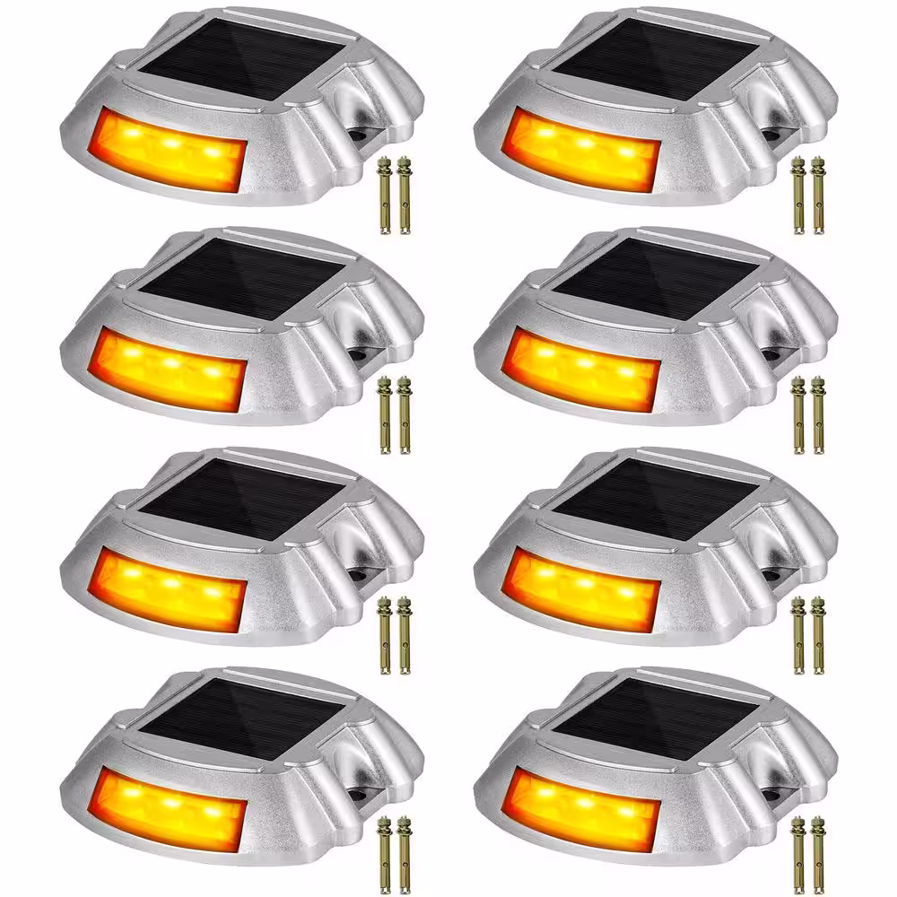 VEVOR Driveway Lights 8-Pack Outdoor Waterproof Wireless 6 LEDs Solar Dock Lights with Screw for Warning Walkway Path, Orange