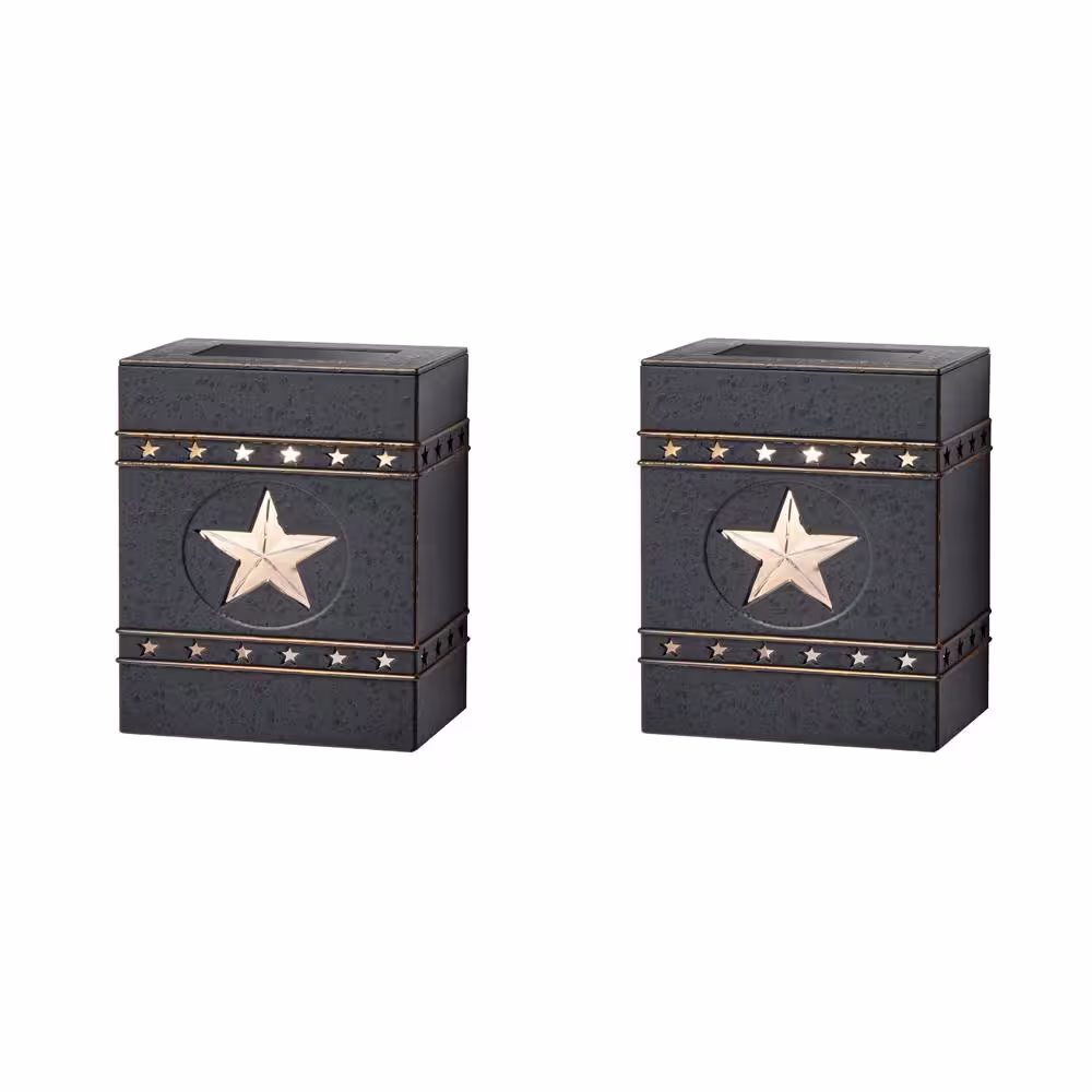 Hampton Bay Distressed Black Integrated LED Outdoor Solar Deck Light with American Star (2-Pack)