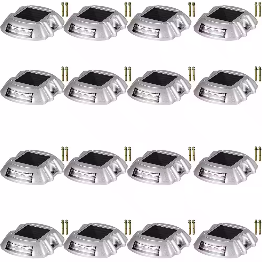 VEVOR Solar Dock Lights 16-Pack Outdoor Waterproof Wireless 6 LEDs Solar Driveway Lights with Screw for Path Garden, White