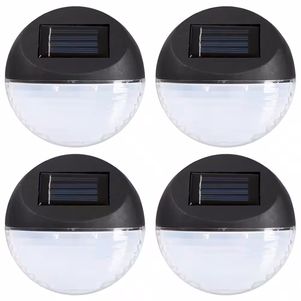 Pure Garden Solar Powered Black Round LED Light (4-Pack)