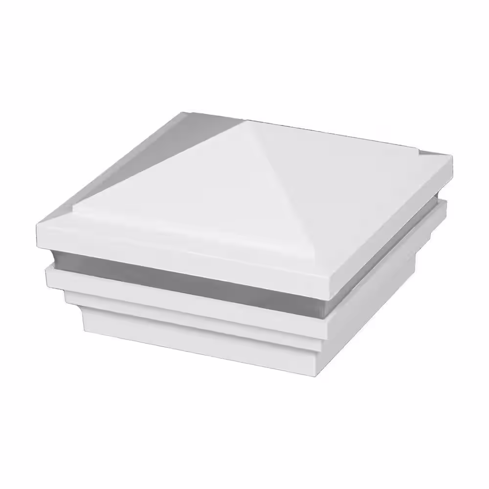 Fiberon 4 in. x 4 in.Tranquil White Integrated LED Fits Post Sleeve Hardwired Pyramid Downward Deck Post Cap Light