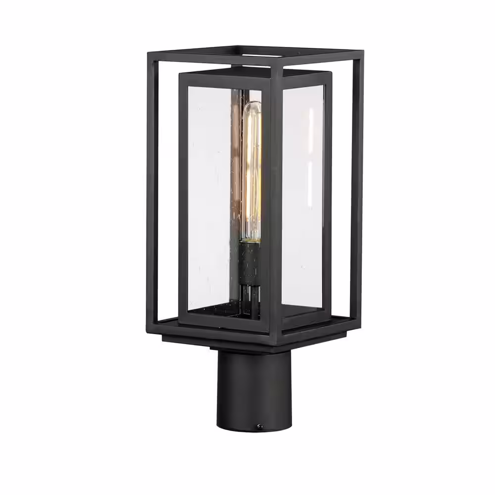 Progress Lighting Cardiff Collection 1-Light Textured Black Clear Seeded Glass New Traditional Outdoor Post Lantern Light
