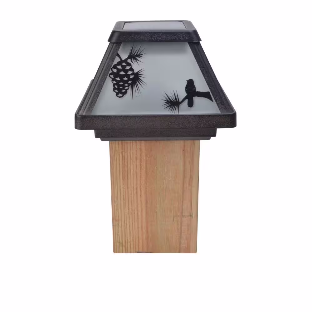 Moonrays Northwood's Glass Silhouette Solar Outdoor Integrated LED Post Cap Deck Light