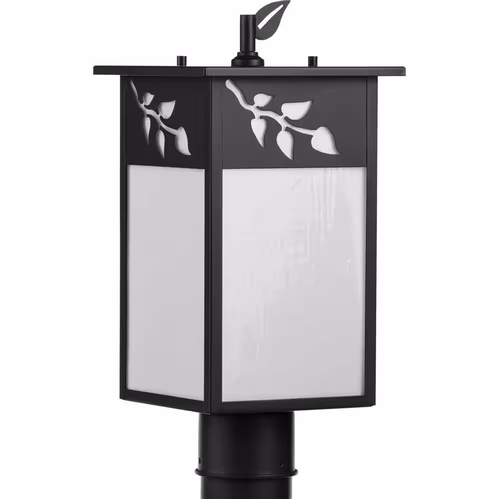 Progress Lighting Trellis Collection 1-Light Antique Bronze White Art Glass Craftsman Outdoor Post Lantern Light