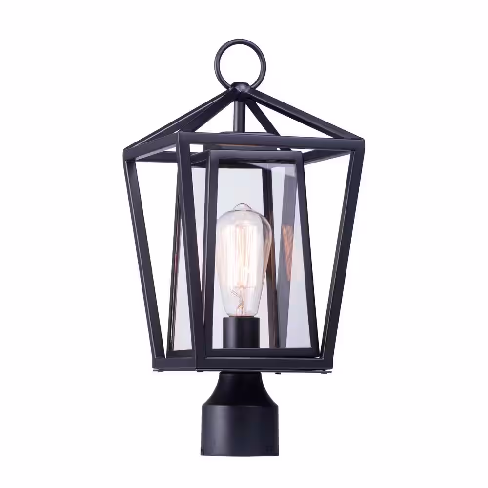 Progress Lighting Benton Harbor Collection 1-Light Textured Black Clear Glass Urban Industrial Outdoor Post Lantern Light