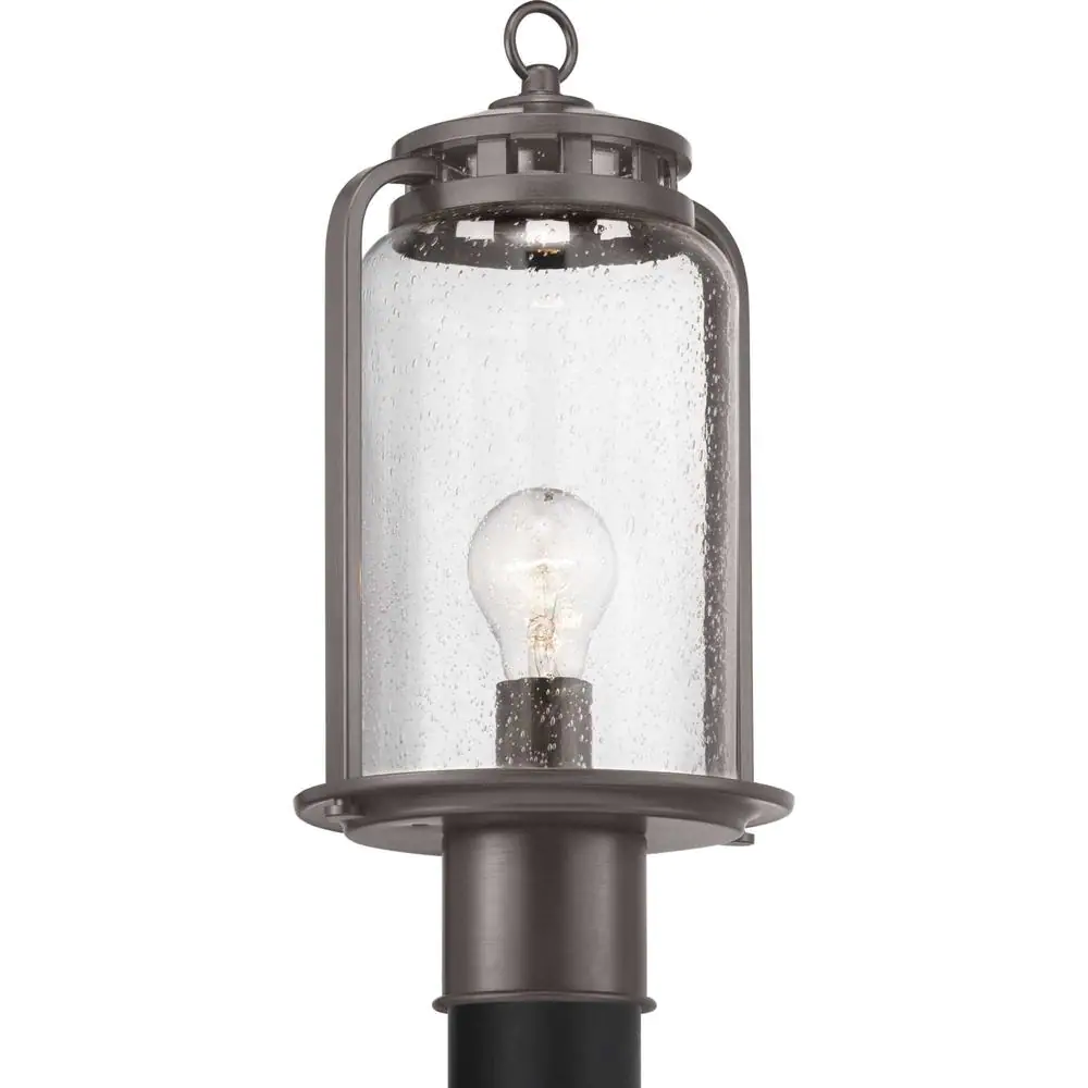 Progress Lighting Botta Collection 1-Light Antique Bronze Clear Seeded Glass Farmhouse Outdoor Post Lantern Light