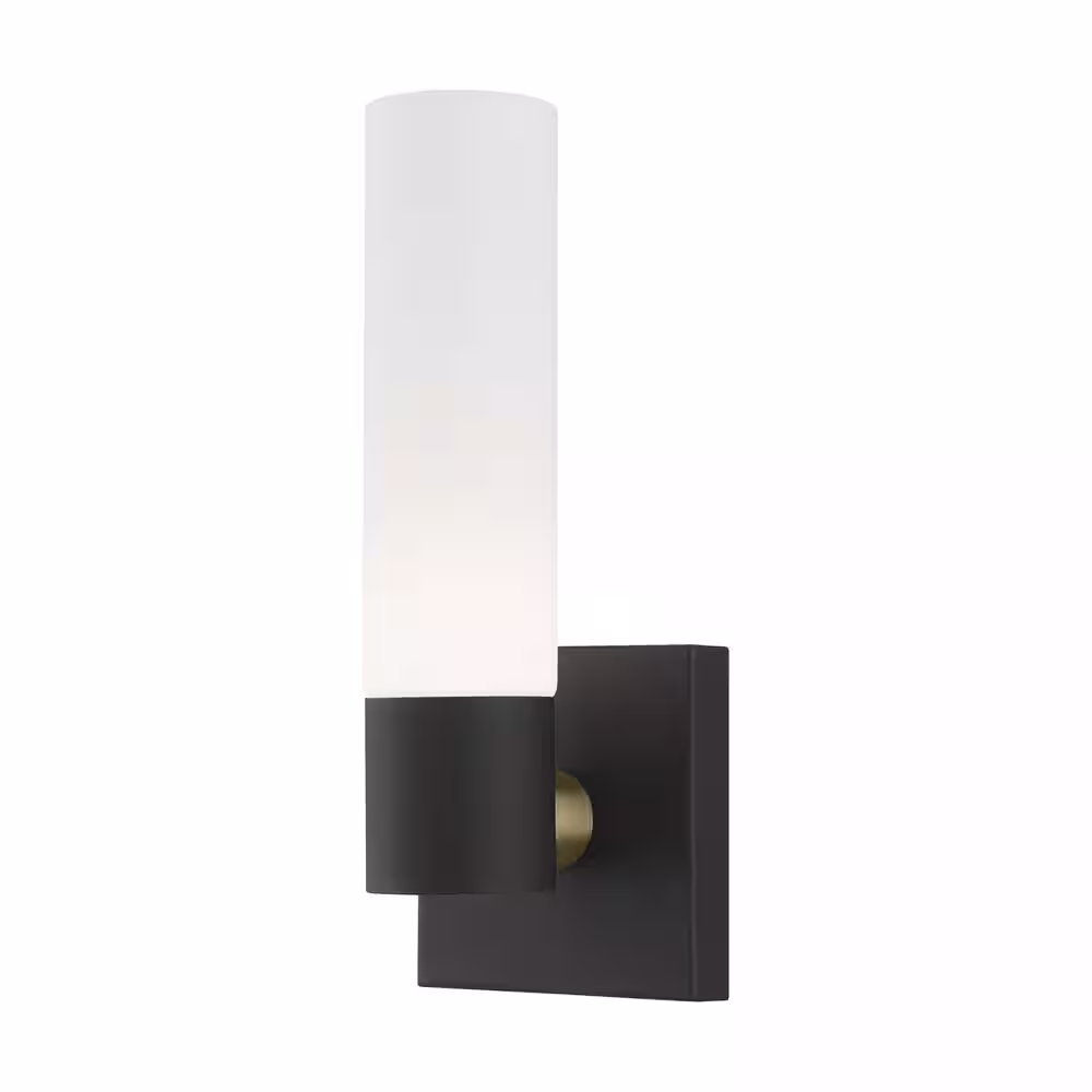 Livex Lighting Aero 1 Light Textured Black ADA Wall Sconce with Hand Blown Satin Opal White Twist Lock Glass