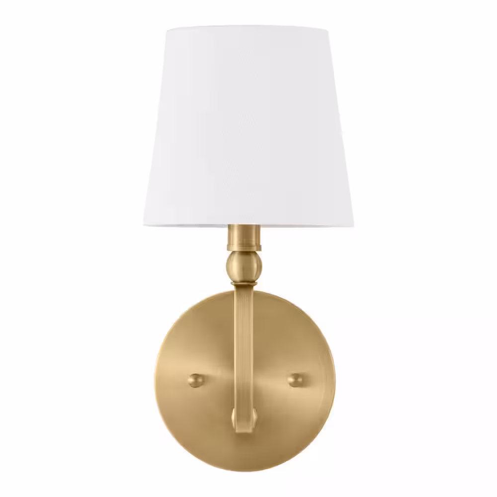 Hampton Bay Canterwood 1-Light Brass Indoor Wall Sconce Light Fixture with Tapered Fabric Shade