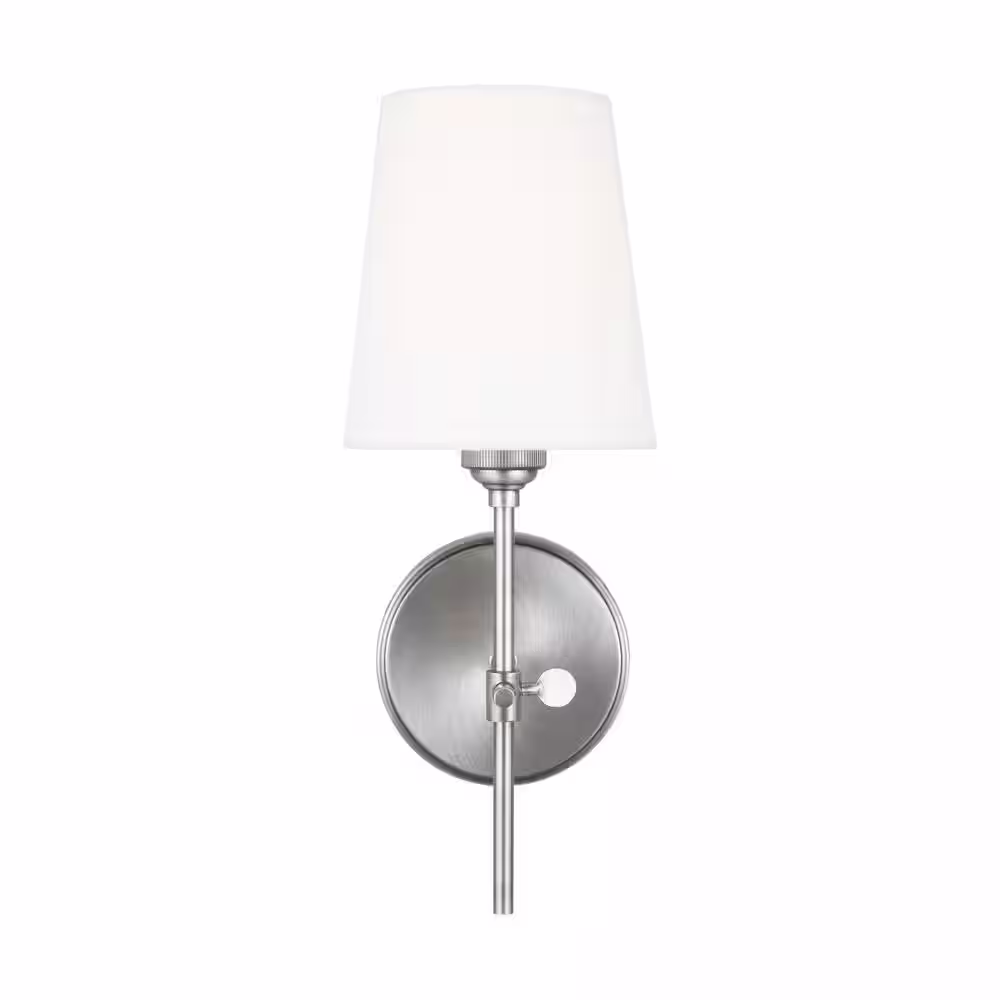 Generation Lighting Baker 5.5 in. 1-Light Antique Brushed Nickel Wall Sconce With White Linen Fabric Shade