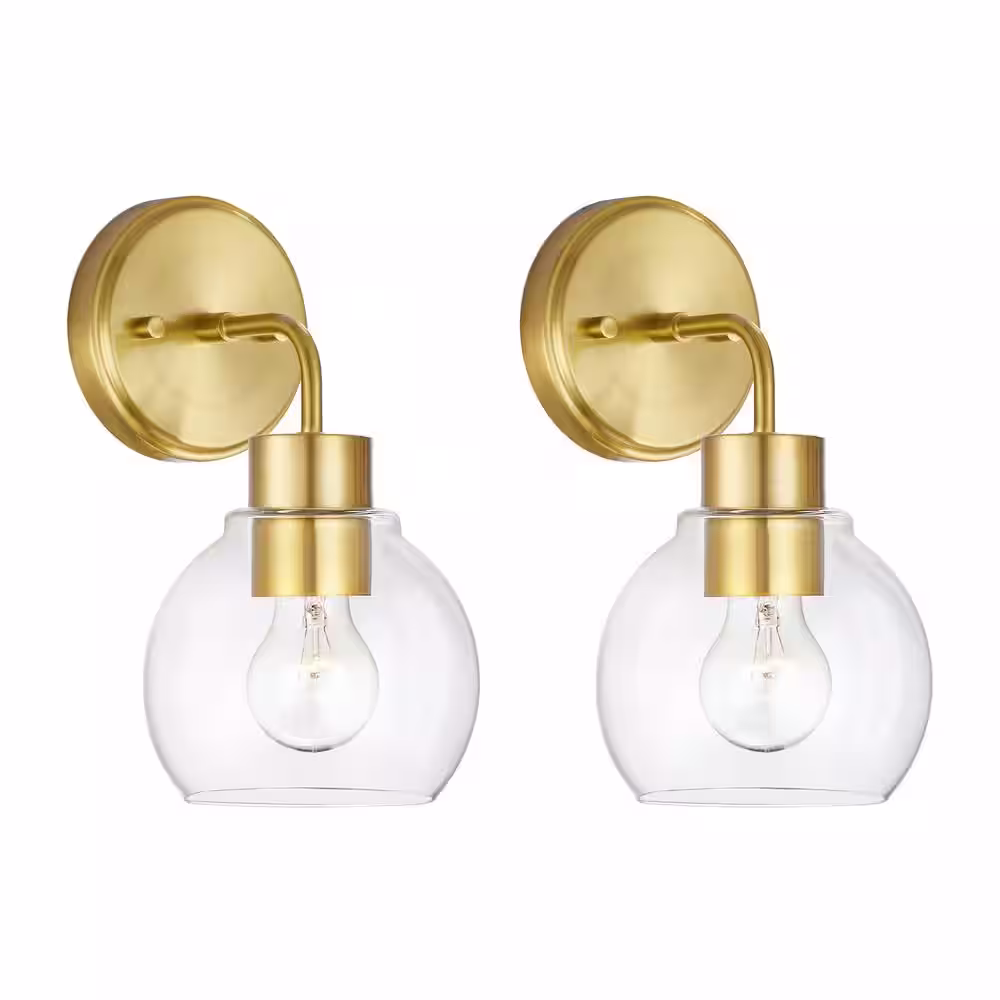 KAWOTI 4.72 in. 1-light Antique Brass Globe Bathroom Vanity Wall Sconce(Set of 2)