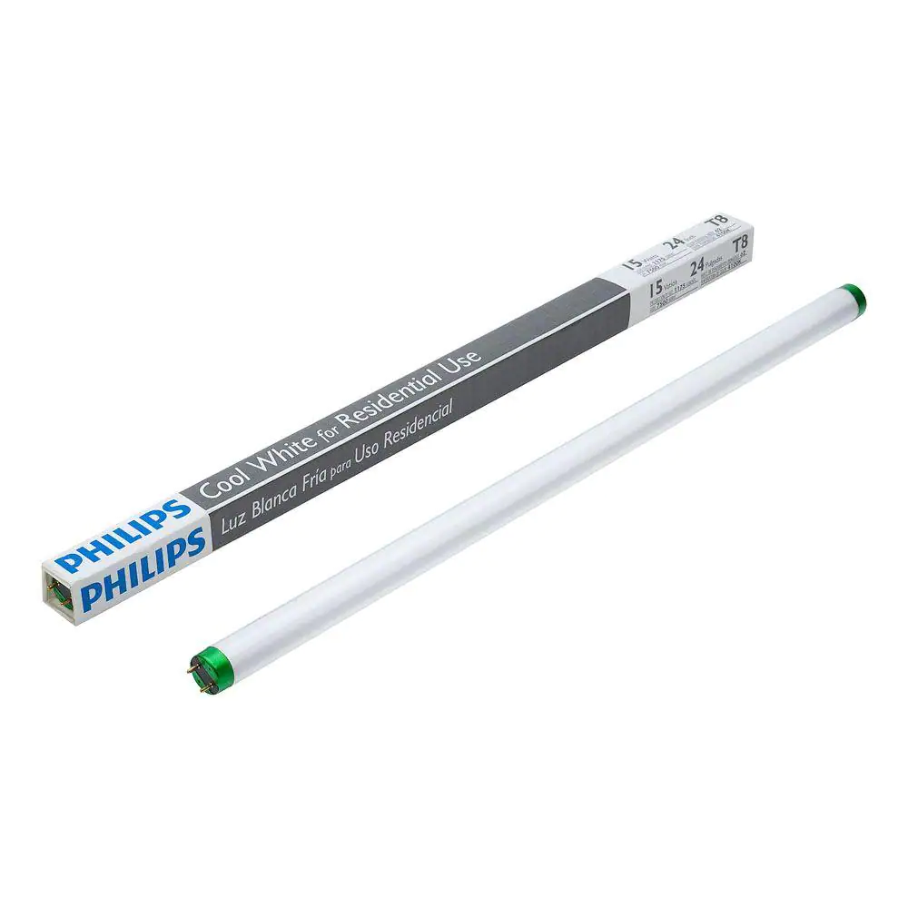 Philips 15-Watt 2 ft. Linear T8 Fluorescent Tube Light Bulb Cool White (4100K) (1-Pack)