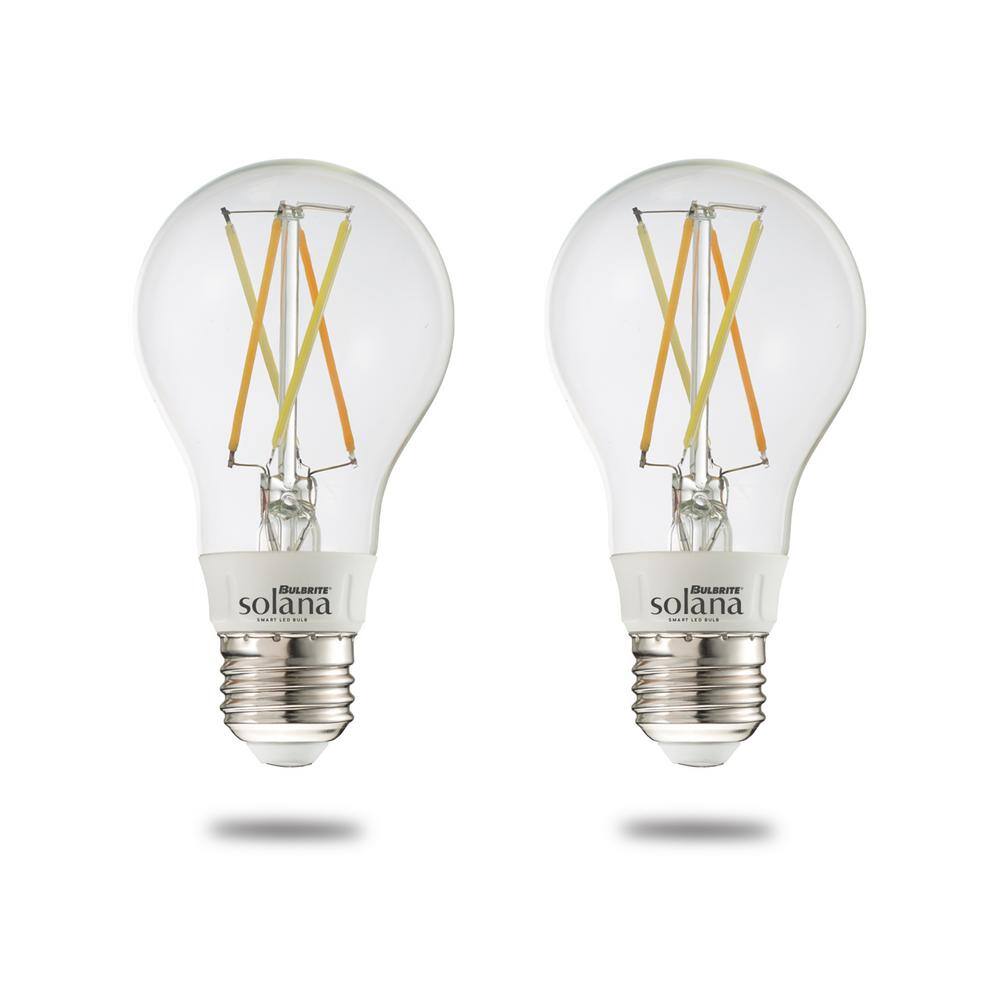 Bulbrite Solana 40-Watt Equivalent A19 Smart WIFI Connected LED Light Bulb, Clear (2-Pack)