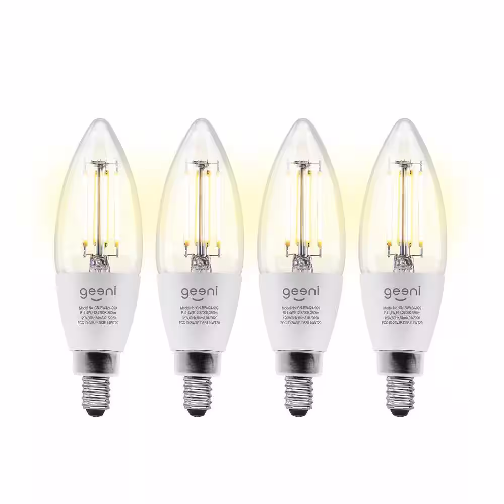 Geeni 40-Watt Equivalent Wi-Fi Smart B11 Vintage Edison Filament Dimmable LED Light Bulb White (4-Pack)