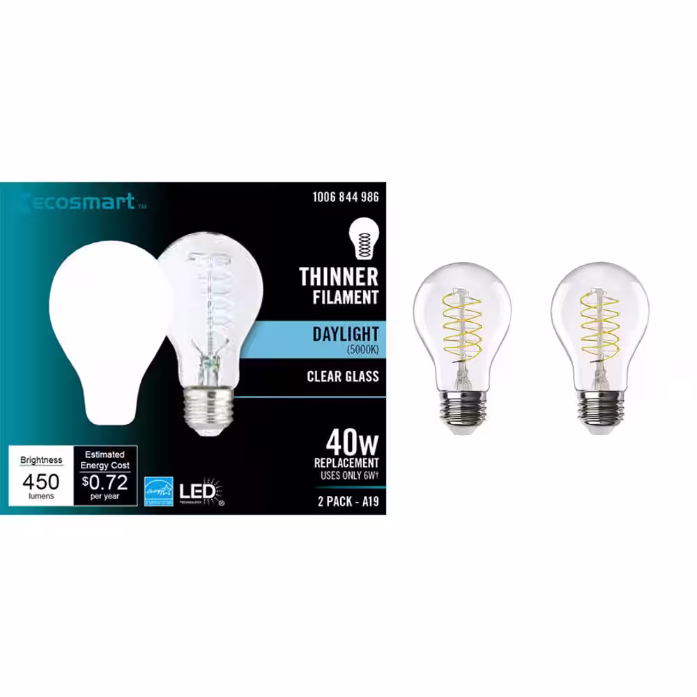 EcoSmart 40-Watt Equivalent A19 ENERGY STAR and CEC Dimmable Fine Bendy LED Light Bulb Daylight (2-Pack)