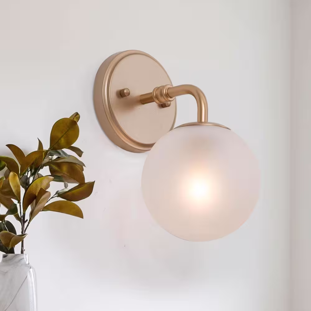 Uolfin Modern Globe Gold Wall Sconce Lighting, 1-Light Bathroom Vanity Light with White Frosted White Shade