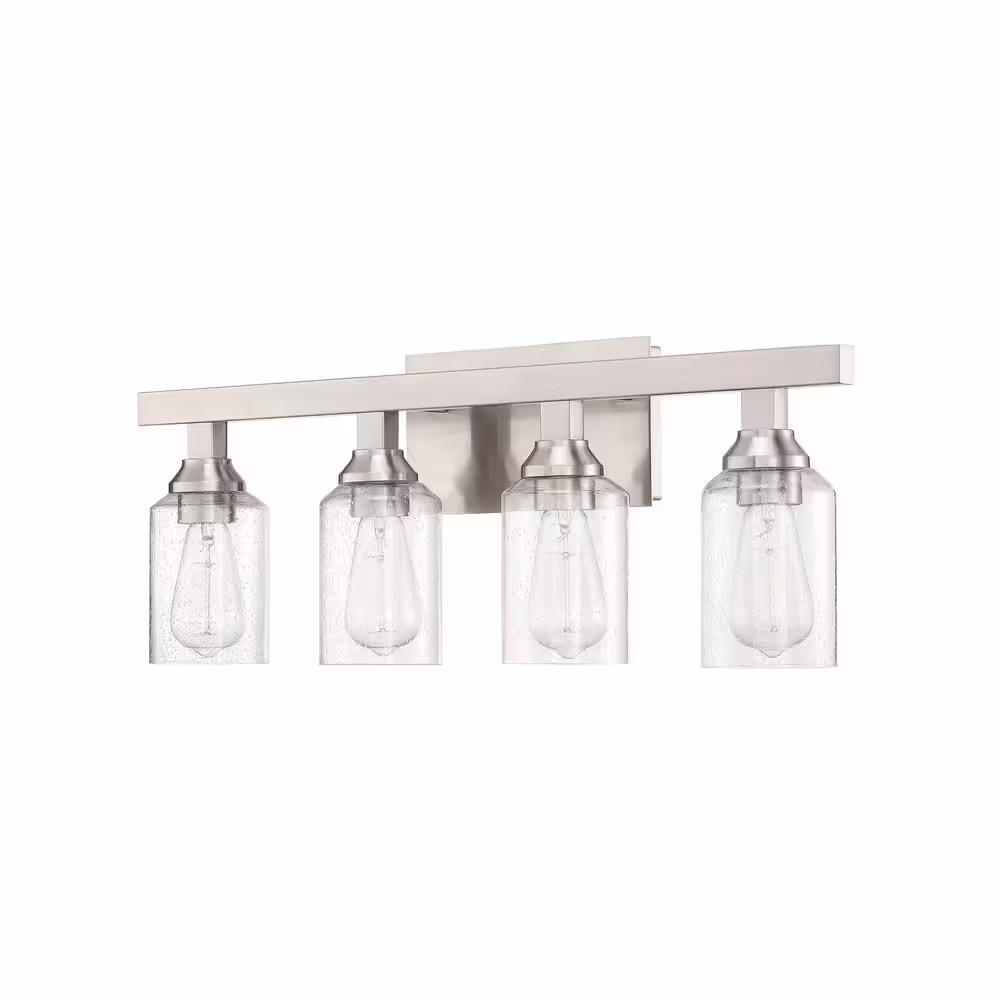 CRAFTMADE Chicago 28.25 in. 4-Light Brushed Polished Nickel Finish Vanity Light with Seeded Glass