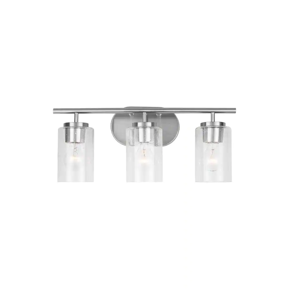 Generation Lighting Oslo 20 in. 3-Light Brushed Nickel Dimmable Bath Vanity Light with Clear Seeded Glass Shades