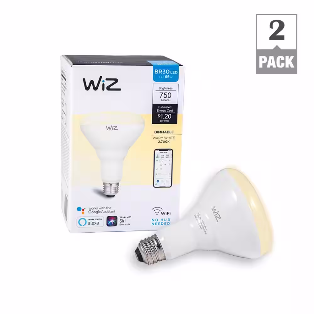 WiZ 72W Equivalent BR30 Dimmable White Wi-Fi Connected Smart LED Light Bulb, 2700K (2-Pack)