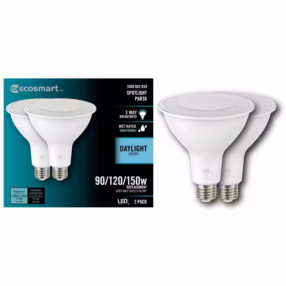 EcoSmart 90/120/150-Watt Equivalent PAR38 3-Way Dimmable Spot LED Light Bulb Daylight (2-Pack)