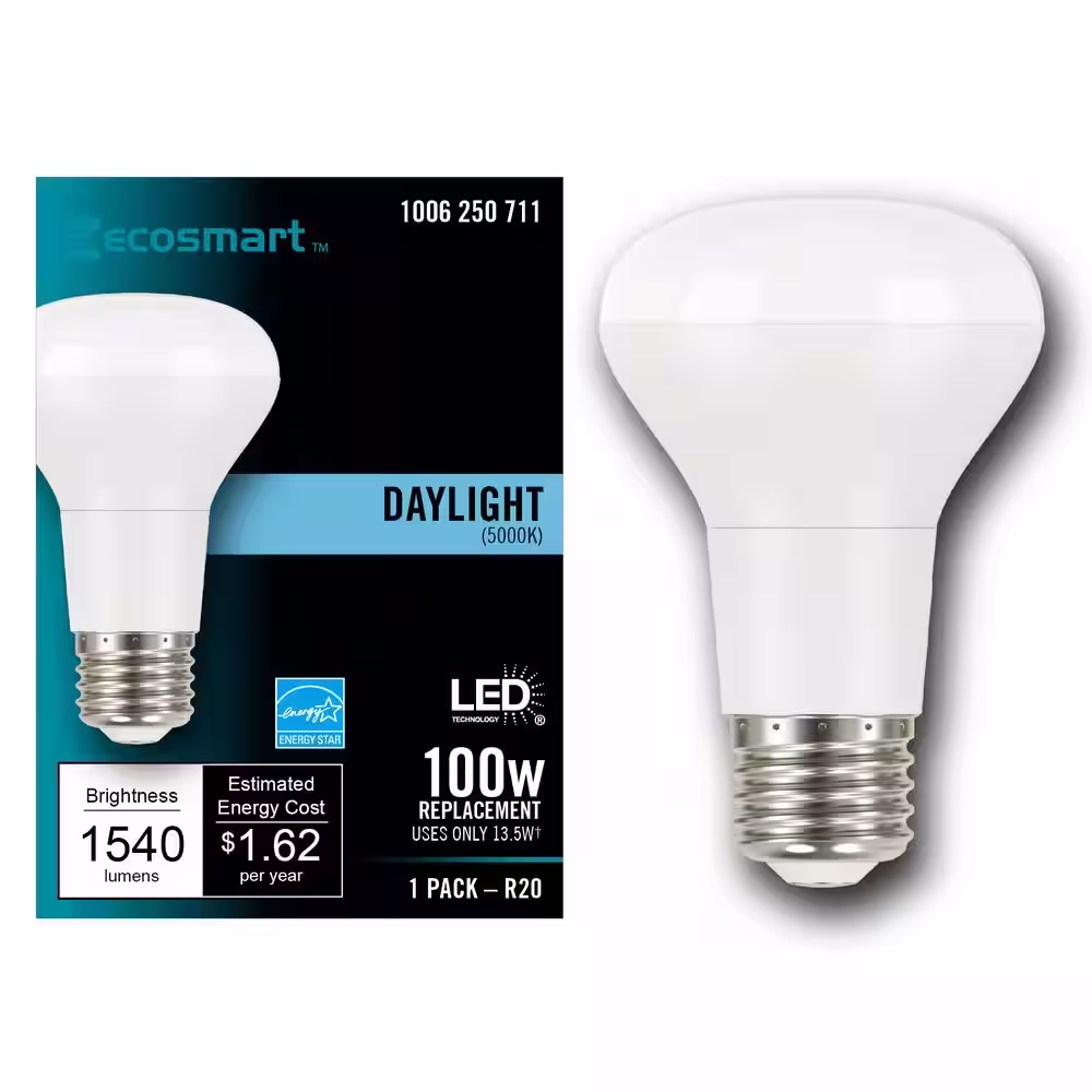 EcoSmart 100-Watt Equivalent R20 CEC Dimmable LED Light Bulb in Daylight 5000K (1-Bulb)