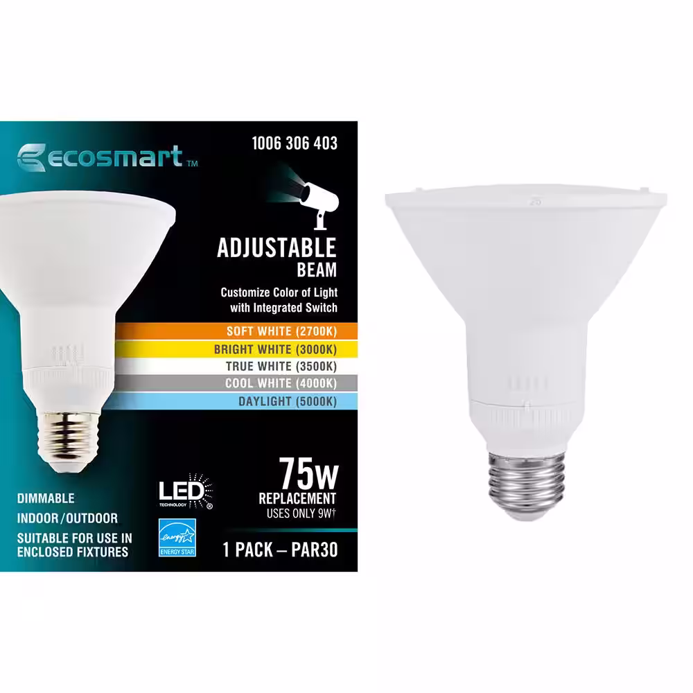 EcoSmart 75-Watt Equivalent PAR30 Dimmable CEC Adjustable Beam Flood LED Light Bulb with Selectable Color Temperature (1-Pack)