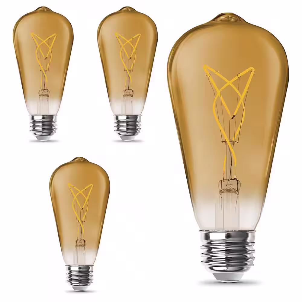 Feit Electric 60-Watt Equivalent ST19 Knot Thin Filament Amber Glass E26 Vintage Edison LED Light Bulb Warm White 2100K (4-Pack)