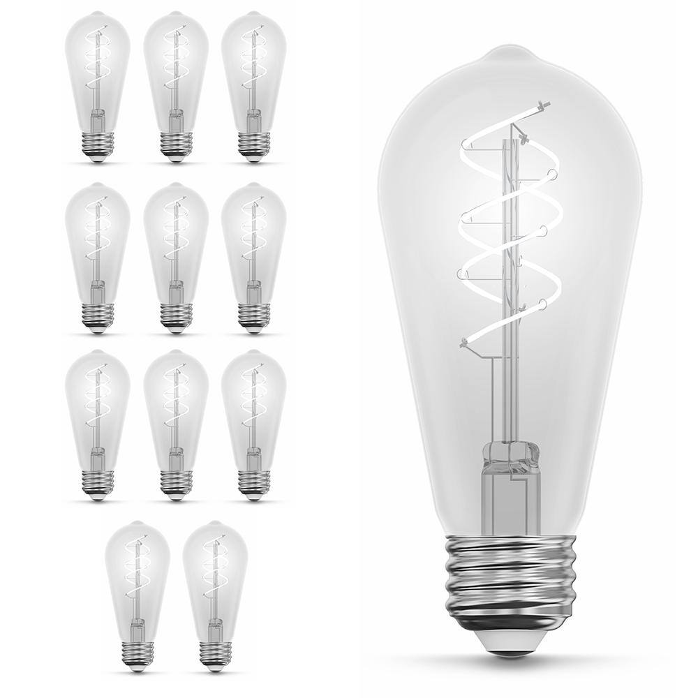 Feit Electric 40-Watt Equivalent ST19 Dimmable Double Spiral White Filament Clear E26 Vintage Edison LED Light Bulb, 5000K (12-Pack)