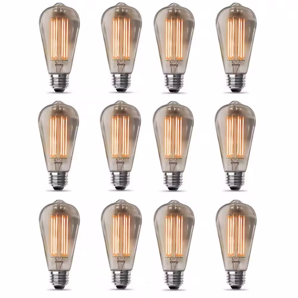 Feit Electric 100-Watt Equivalent ST19 Straight Filament Dusk to Dawn Clear Glass E26 Vintage Edison LED Light Bulb 2700K (12-Pack)