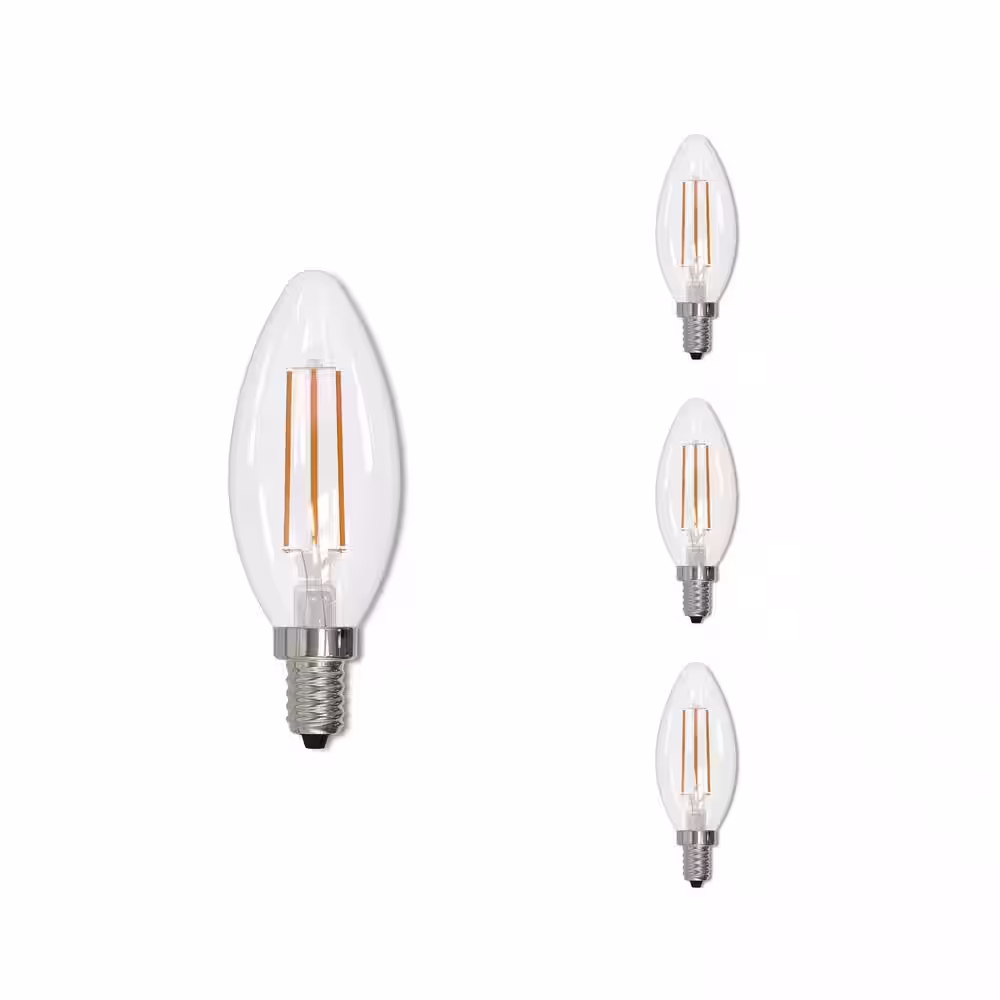 Bulbrite 60-Watt Clear Dimmable B11 Edison Style Filament LED Light Bulb Warm White with Candelabra Screw Base, 2700K(4-Pack)
