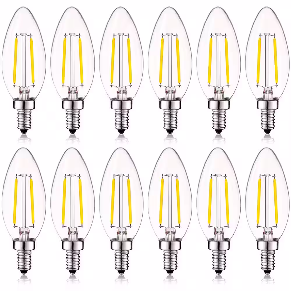 LUXRITE 60-Watt Equivalent B10 Dimmable LED Light Bulbs Clear Glass Filament 2700K Warm White (12-Pack)