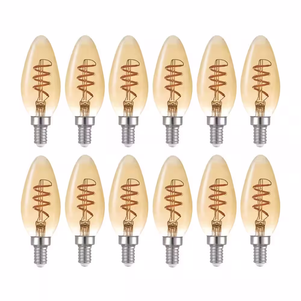 Globe Electric 40 Watt Equivalent B10 Dimmable Spiral Filament Vintage Edison LED Light Bulb, Warm Amber Light (12-Pack)