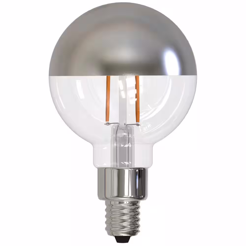 Bulbrite 25-Watt Equivalent Dimmable Half Mirror G16 Vintage Edison LED Light Bulb with Candelabra (E12) Base, 2700K, (4-Pack)