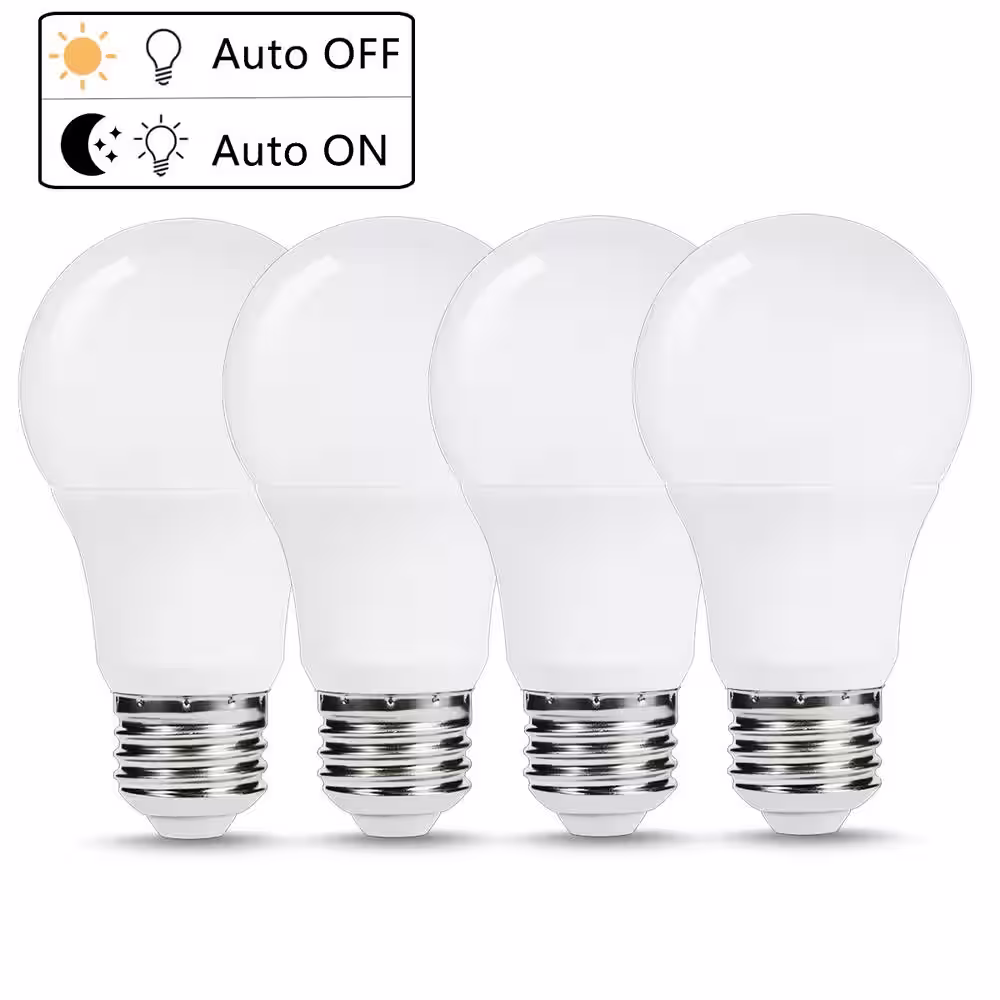 YANSUN 40-Watt Equivalent A19 6W Non-Dimmable Dusk to Dawn LED Light Bulb E26 Base in Warm White 2700K (4-Pack)