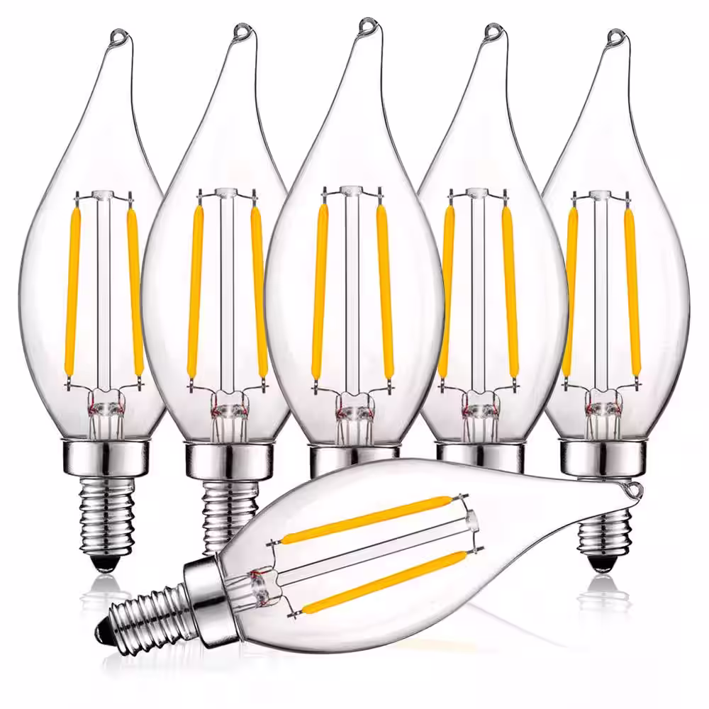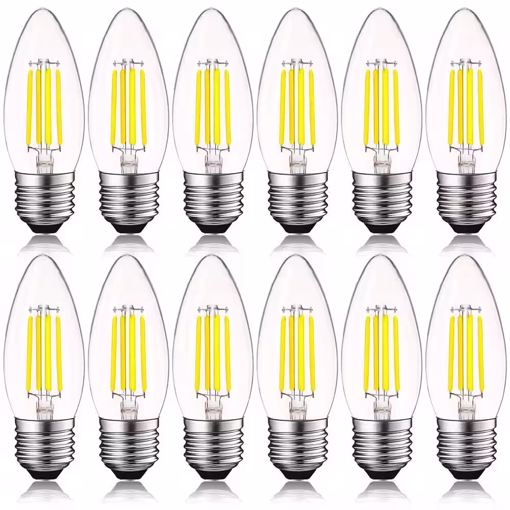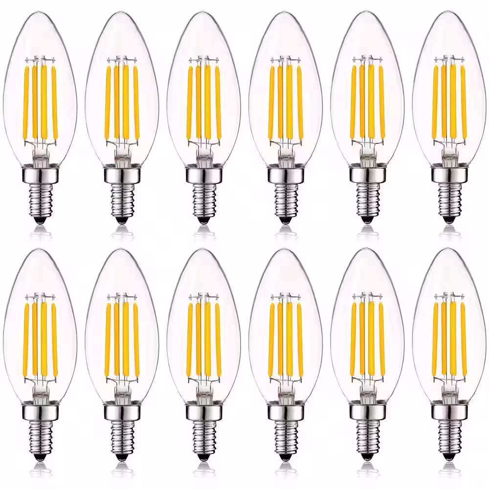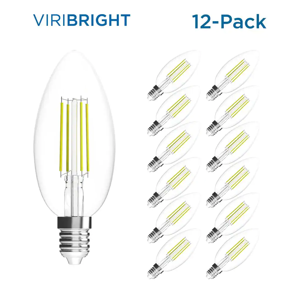Viribright 35-Watt Equivalent B10 Dimmable ENERGY STAR E12 Candelabra Base LED Light Bulb 2700K warm White (12-Pack)