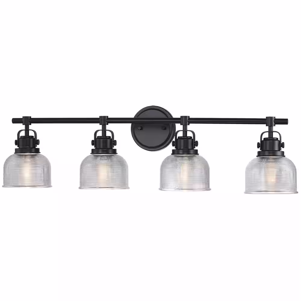 TRUE FINE 33 in. 4-Light Black Bathroom Vanity Light with Clear Prismatic Glass Shade