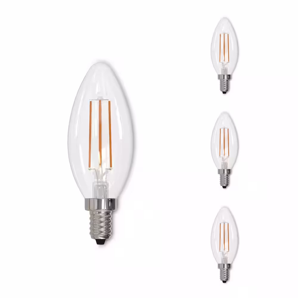 Bulbrite 60-Watt Equivalent B11 Soft White Light 3000K, (E12)Candelabra Screw Base Dimmable Clear Filament LED Light Bulb(4-Pack)