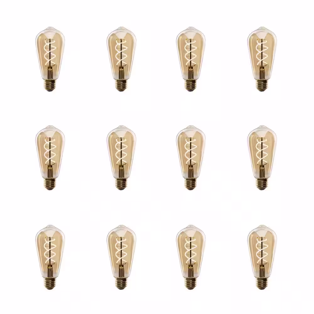 Feit Electric 60-Watt Equivalent ST19 Dimmable Spiral Filament Amber Glass E26 Vintage Edison LED Light Bulb, Warm White (12-Pack)